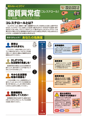 - 健診後の情報提供用ペラ。脂質異常症のうちコレステロールに関連する「HDLコレステロール」「LDLコレステロール」の健診結果から、自分の体の状態と危険度を知ってもらい、状態に即した対応を進めるものです。平成25年度以降の重点となる「非肥満者」「受診勧奨」にも対応。