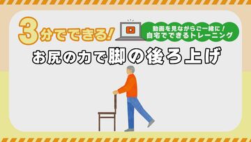 - イスにつかまって行う、脚の後ろ上げをご紹介します。お尻の筋肉を鍛え、安定して歩ける体を手に入れましょう。